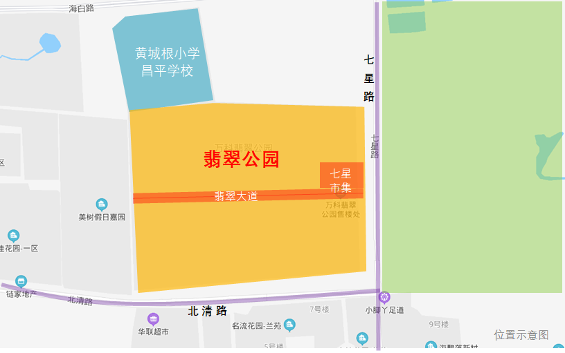 项目的位置在北七家,七星路与北清路交汇处,距离未来科学城约2km的距离。南侧北清路,东侧是公园绿地。
