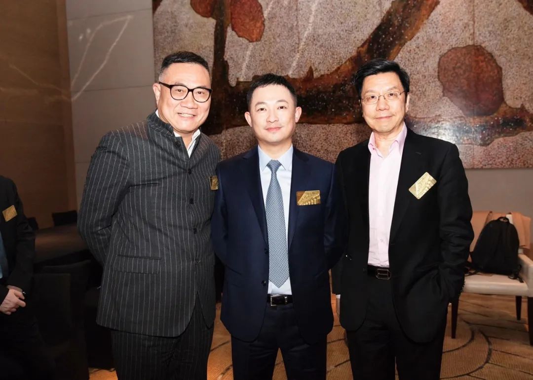 胡斌、周源与甘剑平上市合影图