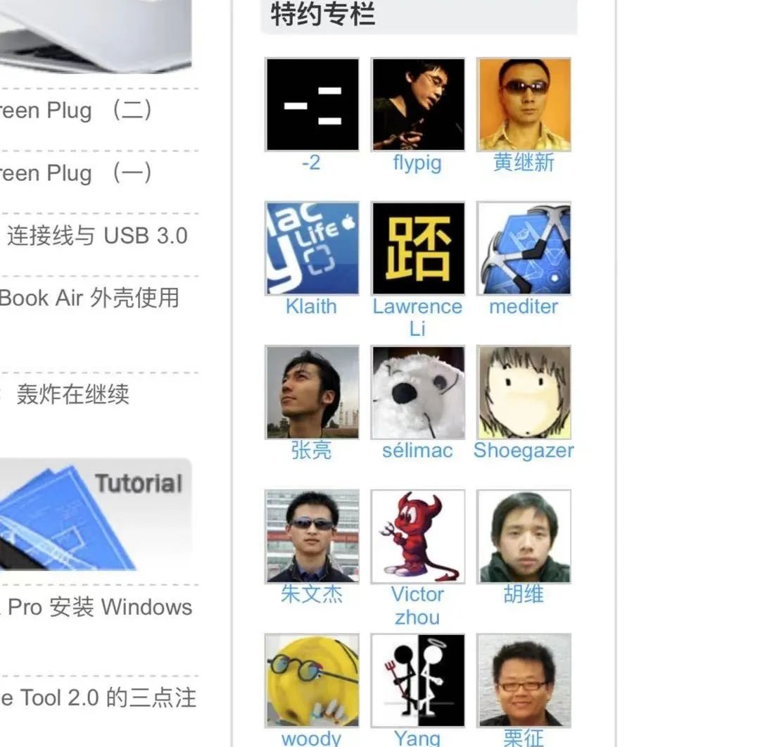负责搭网站的是Woody,他当时在搞工业设计。Woody在张亮博客下面留言,两人因而结识,Woody还给Apple4us设计了那个苹果里加两点当眼睛的logo。张亮在《环球企业家》的同事黄继新也被张亮拉了进来,但就这两三杆枪要做一个科技博客还是不够。张亮随即想到两个人,一个是自己很多年前就认识、当时正给上海很多大众读物写科技专栏文章的负二,一个是知名博主飞猪。