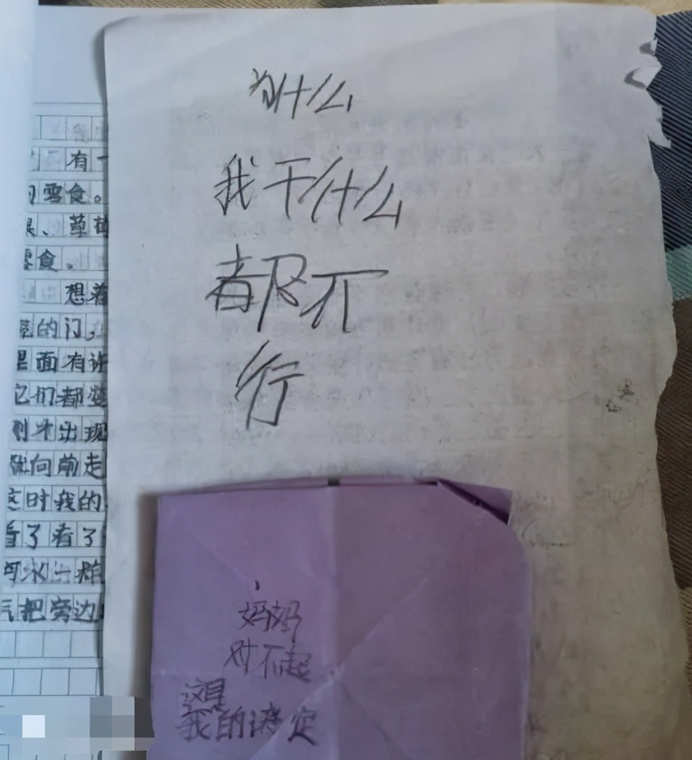 一名9岁的小女孩,因为没法按时完成老师布置的作业,从15楼一跃而下。她留给这个世界最后的文字是:“妈妈对不起,这是我的决定……为什么我干什么都不行?”