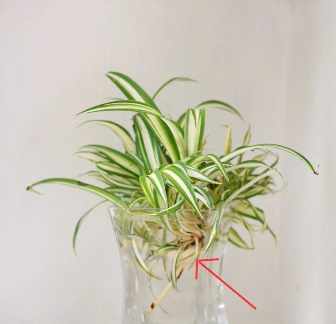 吊兰剪下来的匍匐分枝,不能完全浸泡在水里,要让这个侧芽底部大概两三厘米浸泡在水中,所以在添加水的时候水位不能太深,之后将它摆放在通风透光处,不要晒到阳光,保持较高的空气湿度和温暖的环境,温度维持在20~25度之间,可以每隔两三天换水一次,这样可以长出更多的新根。