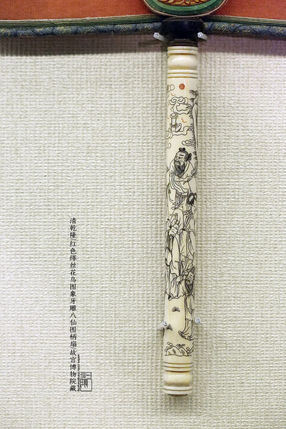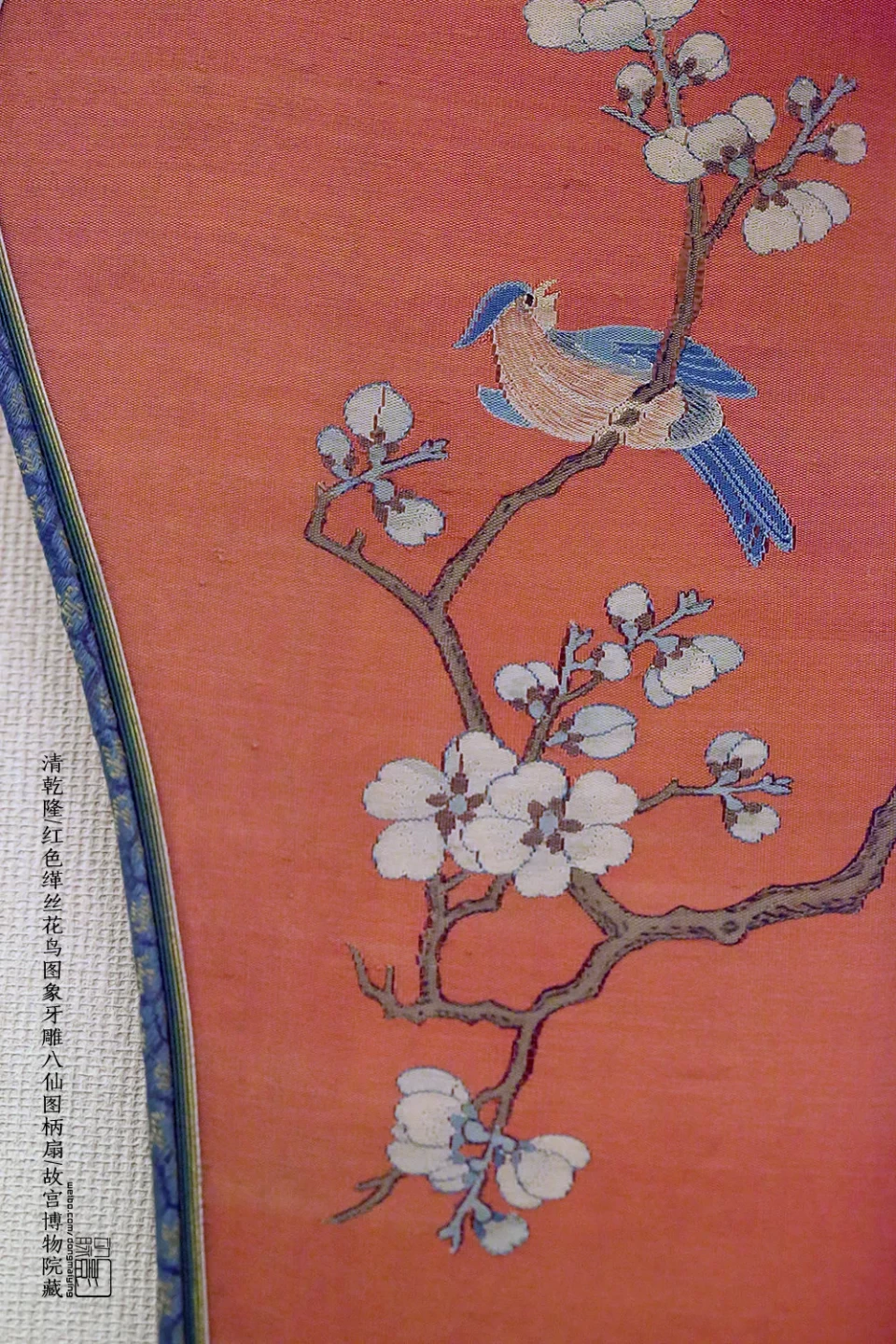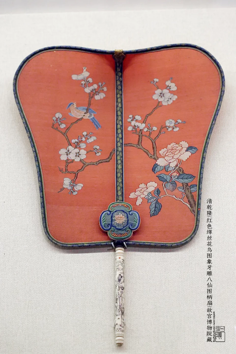 △ 清 乾隆 红色缂丝花鸟图象牙雕八仙图柄扇