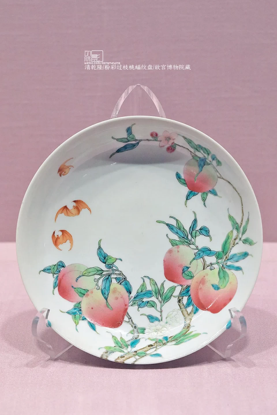 △ 清 乾隆 彩粉过枝桃蝠纹盘