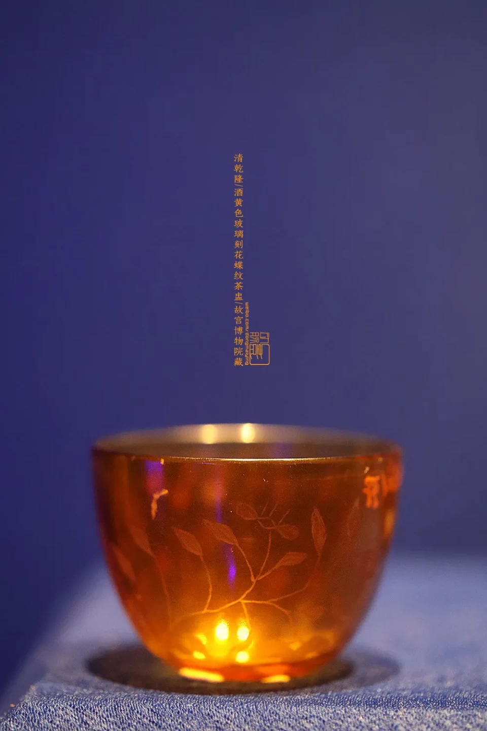△ 清 乾隆 酒黄色玻璃刻花碟纹茶盅