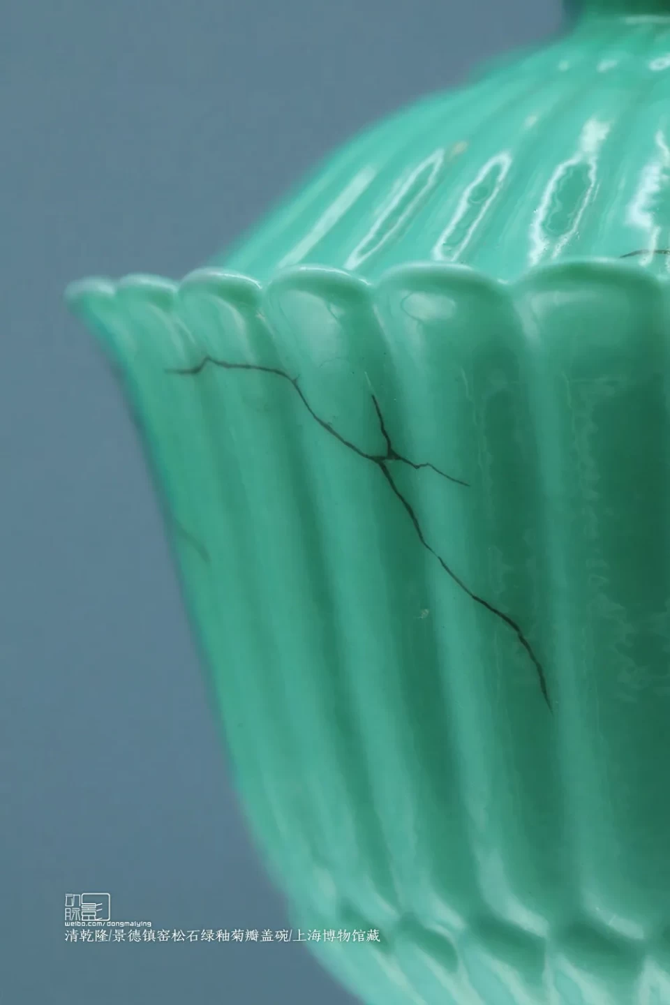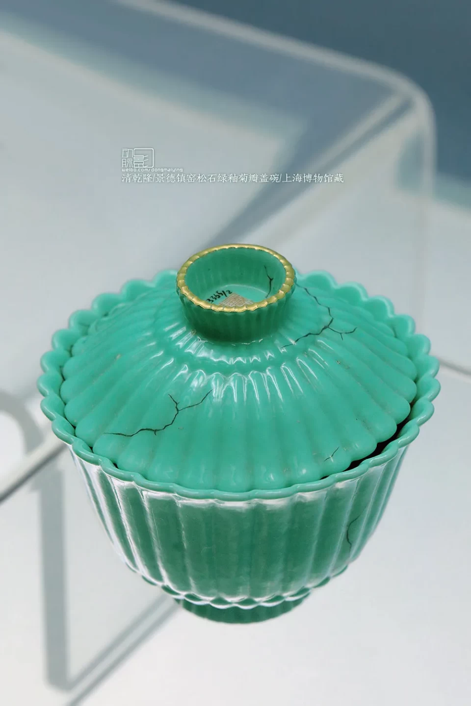 △ 清 乾隆 景德镇窑松石绿釉菊瓣盖碗