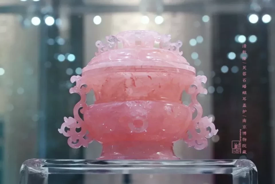 要说到最令人一眼惊艳的文物,便要数芙蓉石蟠螭耳盖炉。