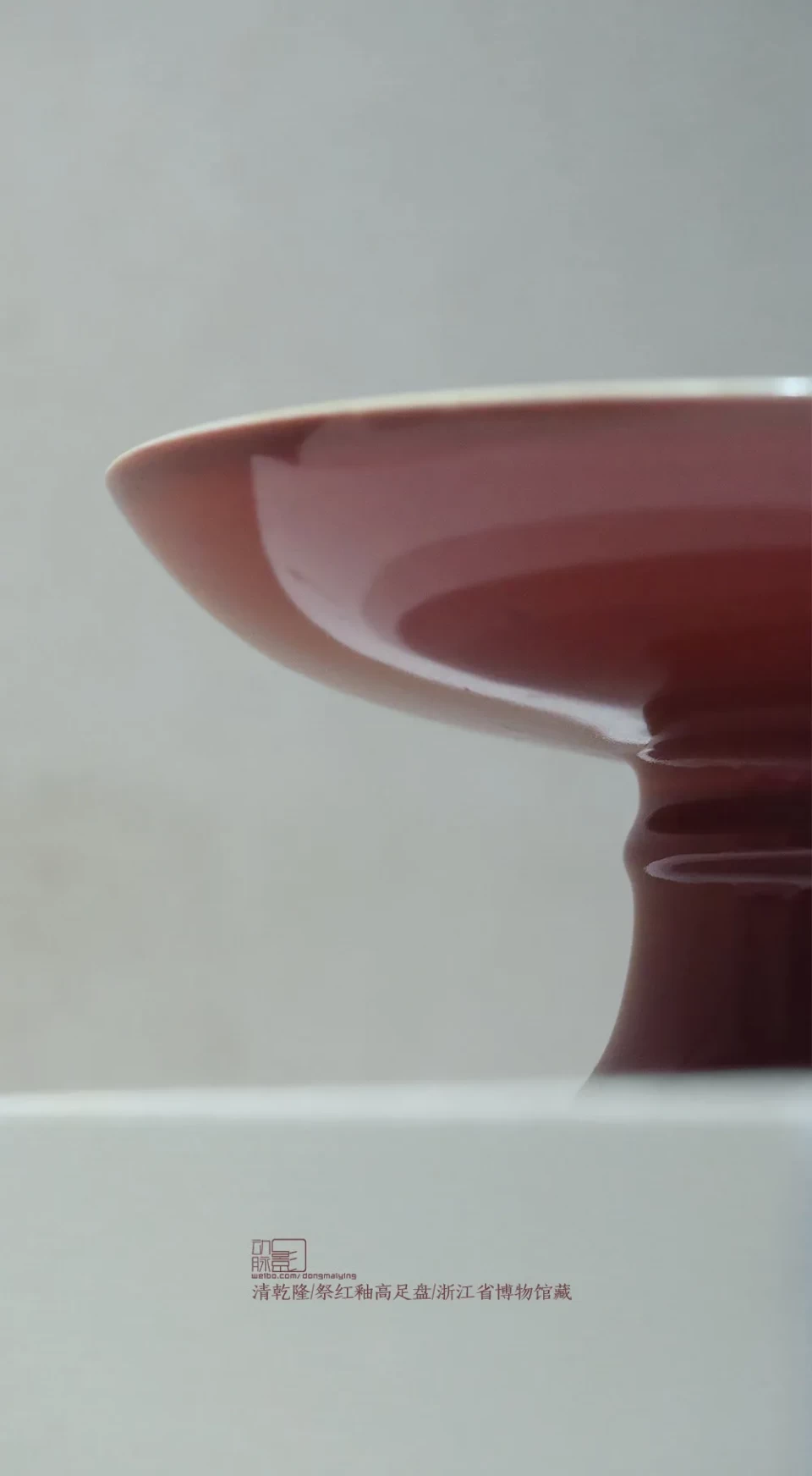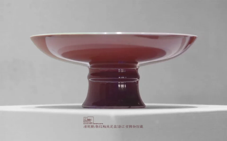 高足盘的线条舒展柔美,富有韵律感,与祭红一色结合宛如天成。