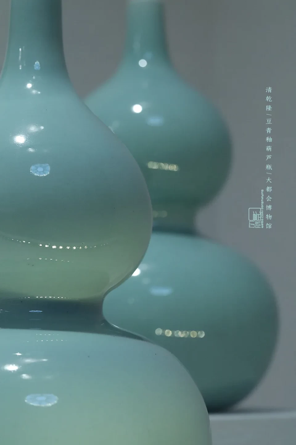 青色釉包括天青、粉青、豆青、冬青等,会透出淡淡玉质光泽,苍翠欲滴。