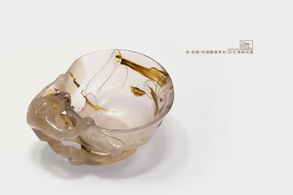 如果你喜欢像芙蓉石一样玲珑通透的文物,那么一定不能错过下面的玛瑙雕螭耳杯。