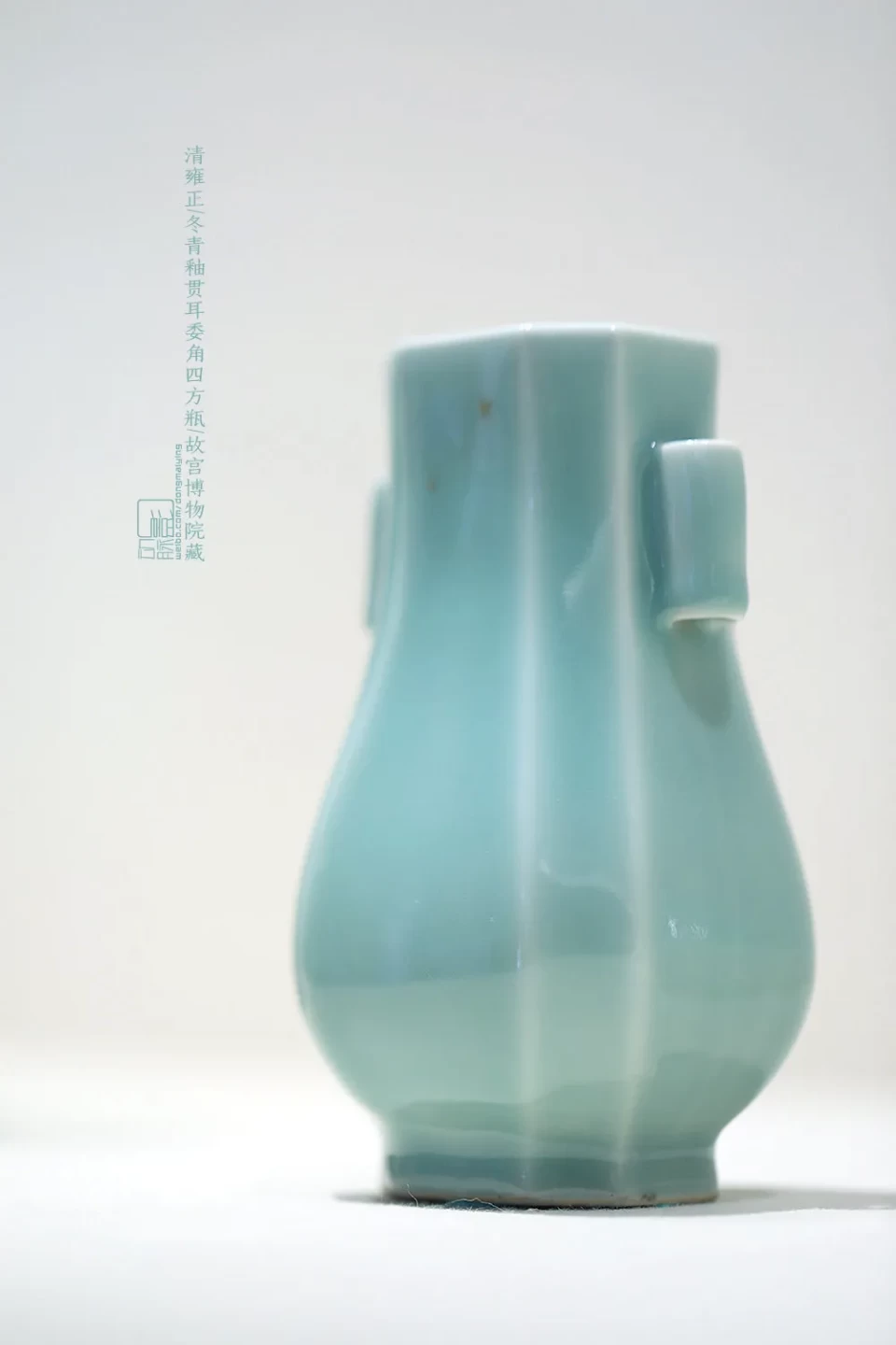 下面的天青釉六方瓶,淡青釉色,内敛素雅,清新馥雅,透出一股尊贵典雅之气。