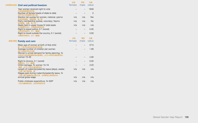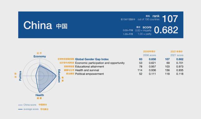 2006年,世界经济论坛在瑞士第一次发布了全球性别差距报告,此后每年都会从政治、经济、教育和健康四个角度进行调查和统计,目的就是为了研究不同领域男女的差距。