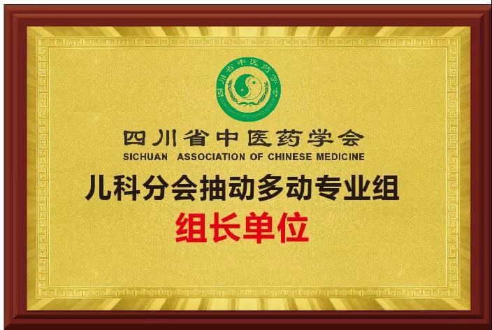鉴于成都中童儿童康复医院长期在多动症、抽动症治疗领域研究和临床诊疗的专业性,成都中童儿童康复医院被推举成为四川省中医药学会儿科分会抽动多动专业组组长单位。