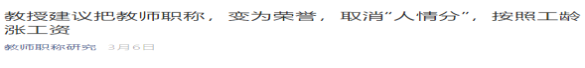 说为之,现在的教师职称评定确实乱象丛生,已经完全背离了职称评定设置的初始目的。职称评定已经不是看水平能力,看教学成绩了。靠的是这证件那证件,靠的是人脉关系。如若不信,就请你按这位教授说的到现实中去看看,调查了解一下就清楚了。”