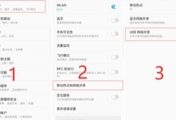 需要注意的是,不同的手机开启方式不同,例如华为手机是打开「无线和网络」、点击「移动网络共享」,开启「USB共享网络」,还有一些手机是通过「更多连接方式」进入。