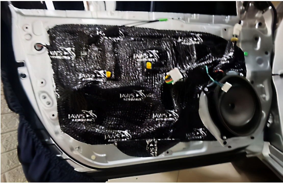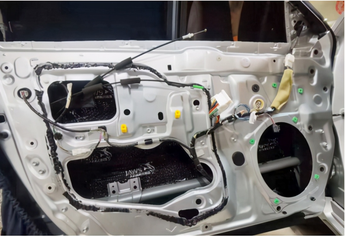使用银鲨减震胶对汽车门板做第二层止振处理