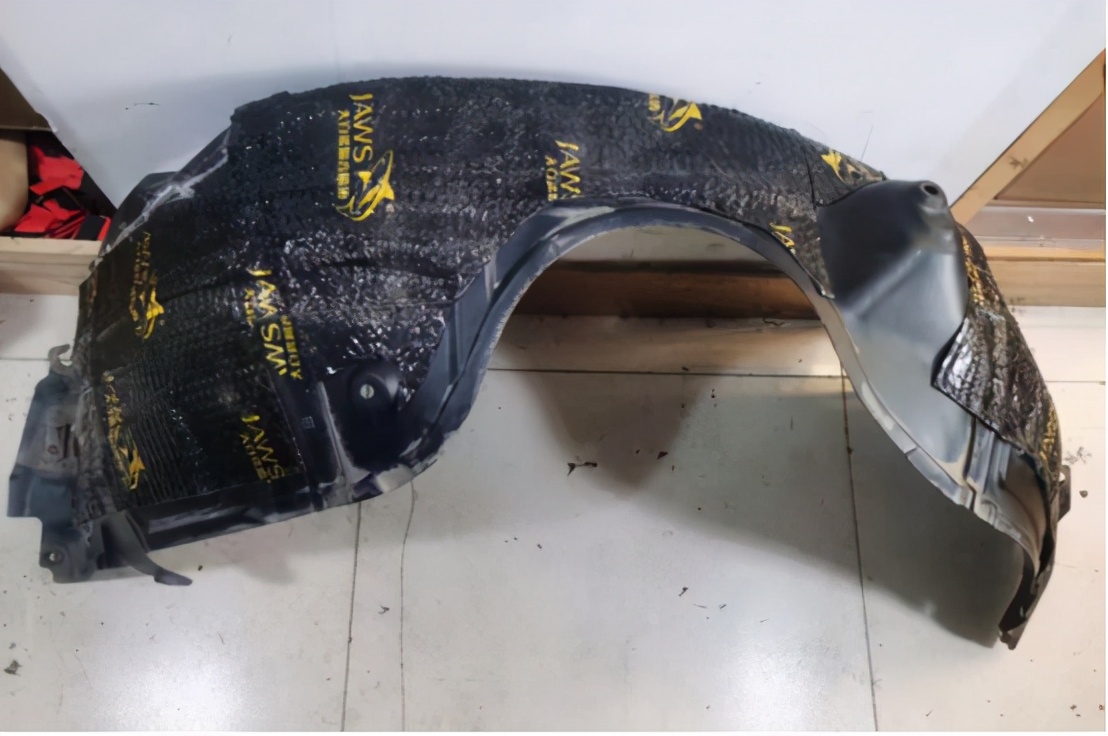为了阻止路噪和胎噪的传入,技师不仅使用黑金减震胶和隔音垫,对轮弧做了止振和隔音处理,还特意使用黑金减震胶和银鲨棉,对后叶子板做了止振和吸音处理,通过多层隔音处理,将路噪和胎噪挡在了车厢之外。