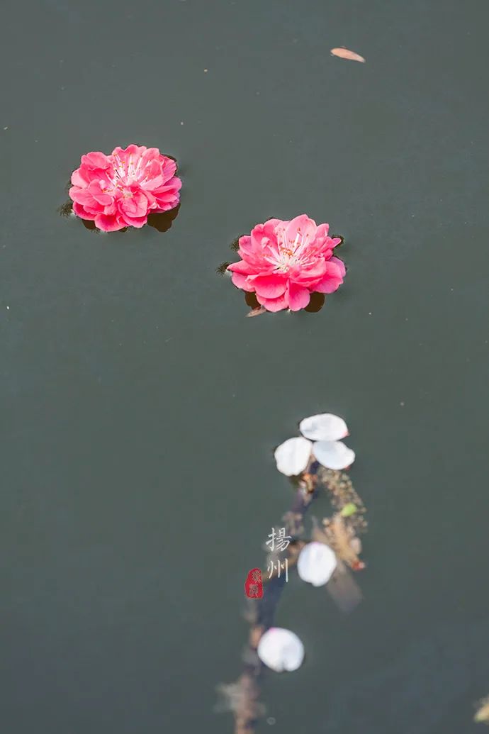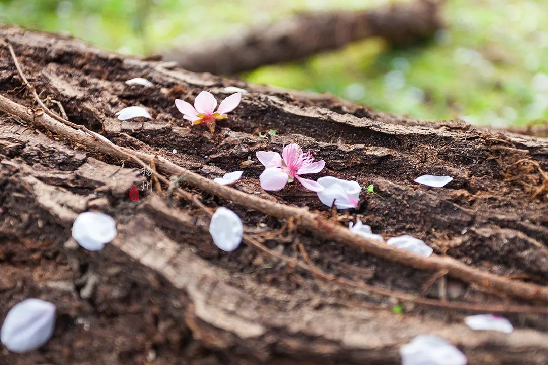 三月的风仿佛自带调皮属性,愣是不管不顾吹落枝头的花朵。有些落在水面上,随着水波轻轻荡漾,漂向远方。