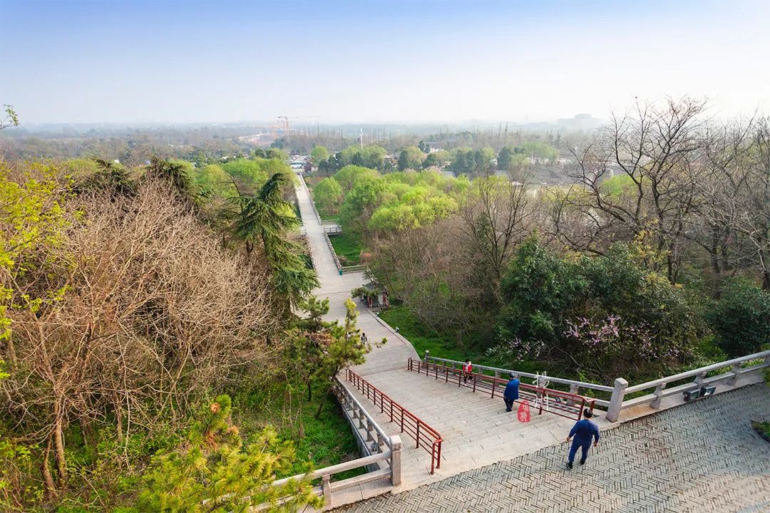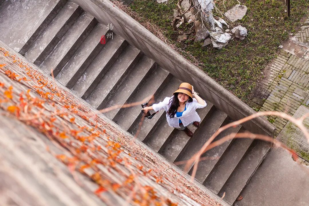 沿着台阶可以一直走到城墙之上,这里是扬州的自然制高点,远眺江淮南北,一览无余。