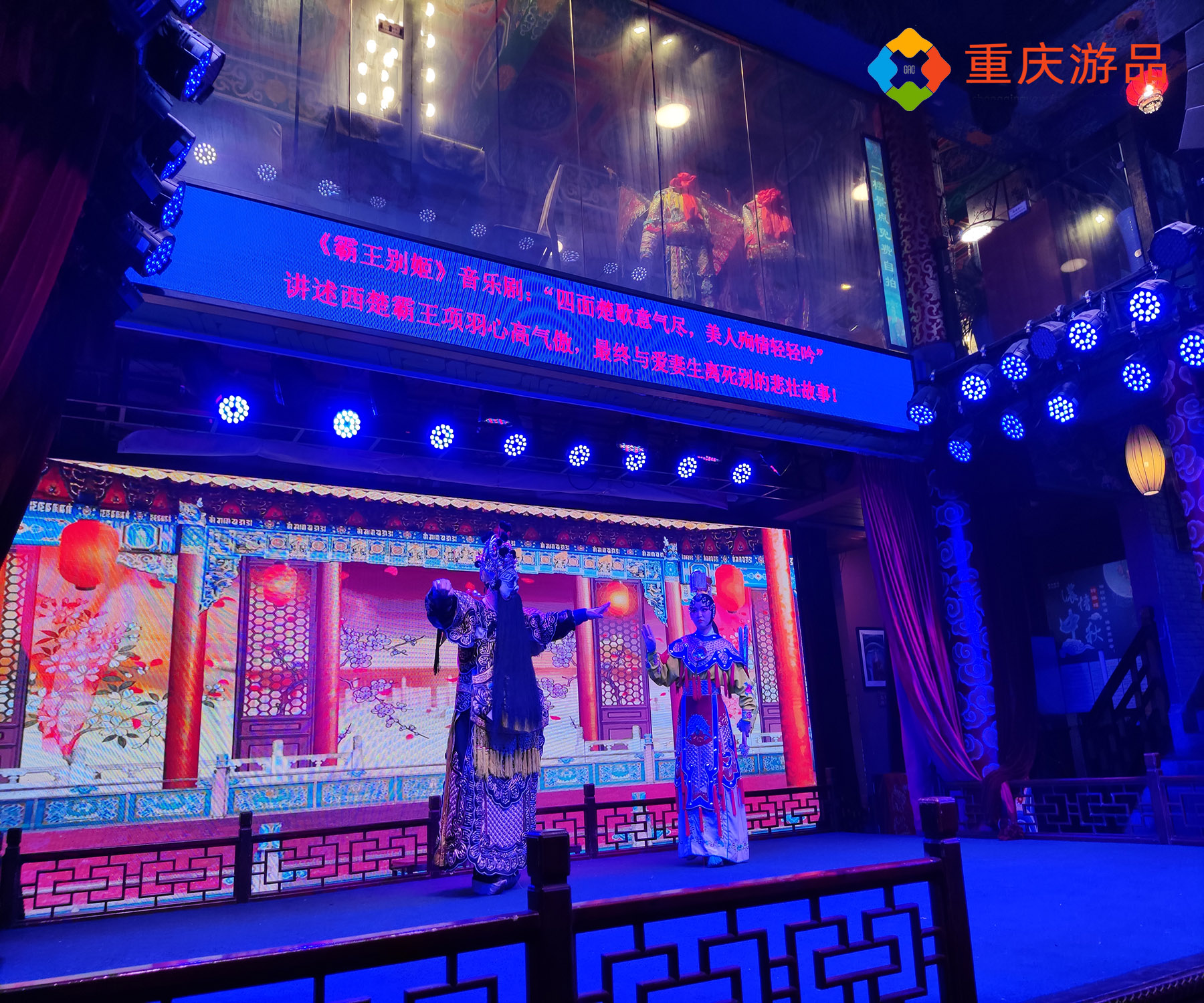 除了民谣,傍晚的磁器口依旧有着戏剧表演。转运楼就是磁器口里比较红火的一家戏剧茶楼了。霸王别姬、白蛇传、梨园荟萃、川剧变脸,这些熟悉的川剧都有演出。晚间入园有特价,18元一位,入场需点一份小吃或者茶水。