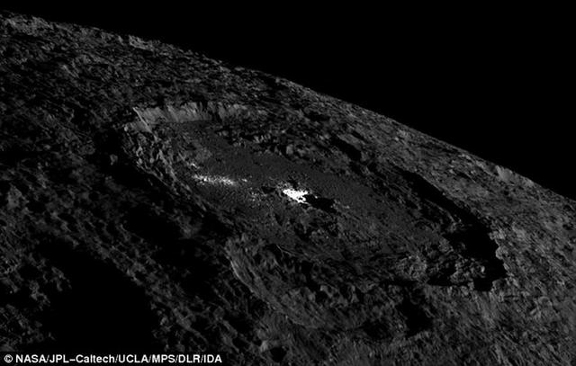 科学家们后来证实了,这些闪亮的光斑是由碳酸钠(一种盐)形成的。
