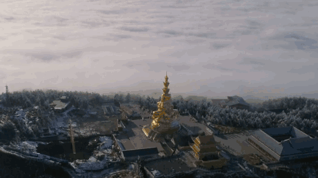 中国四大名山之一的峨眉山,是普贤菩萨示现教化众生的道场。峨嵋山的最高处是金顶,上建金顶寺,威镇全山。金顶寺又称光明寺,因山顶常有光明而得名。每当午夜,在金顶上看群峰中,有千百万点晶莹闪耀的光亮,从山沟里慢慢地升起来,像一盏盏明灯,忽上忽下,灿若明星,人称此奇景为“万盏明灯朝普贤”。