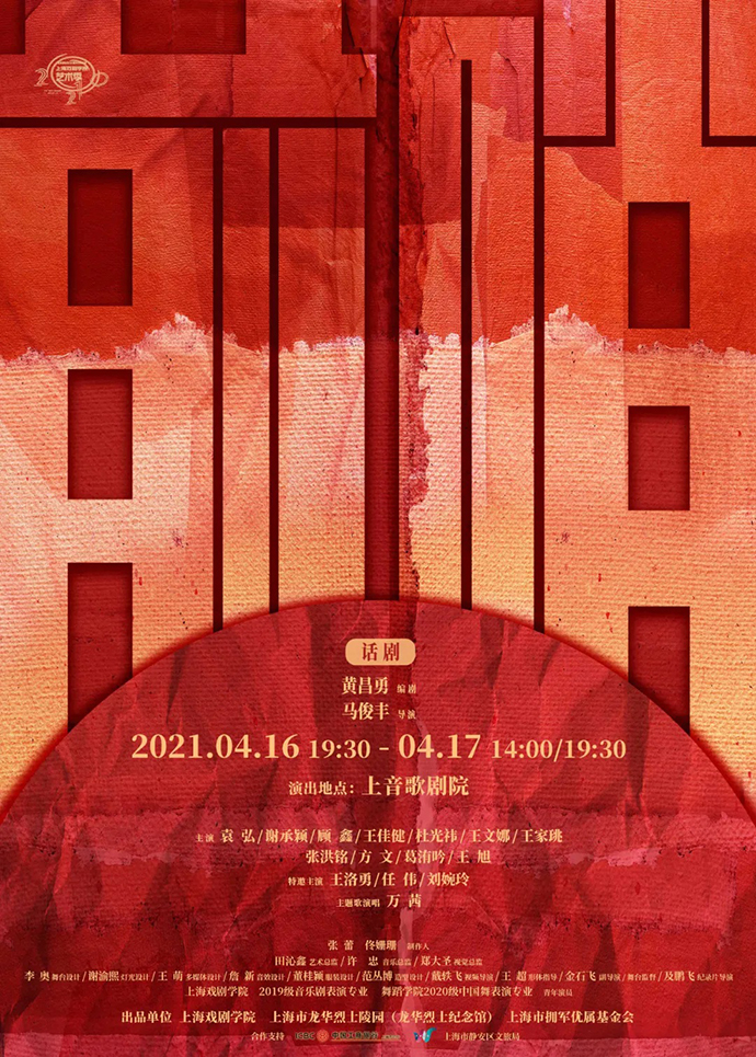 海报《前哨》由上海戏剧学院院长黄昌勇担任编剧。以文献剧的形式,展现了“左联五烈士”在面临人生道路选择时的困苦与坚定、犹疑与勇敢、彷徨与奋进,并通过当代青年与历史的对话,对理想信念进行追寻。