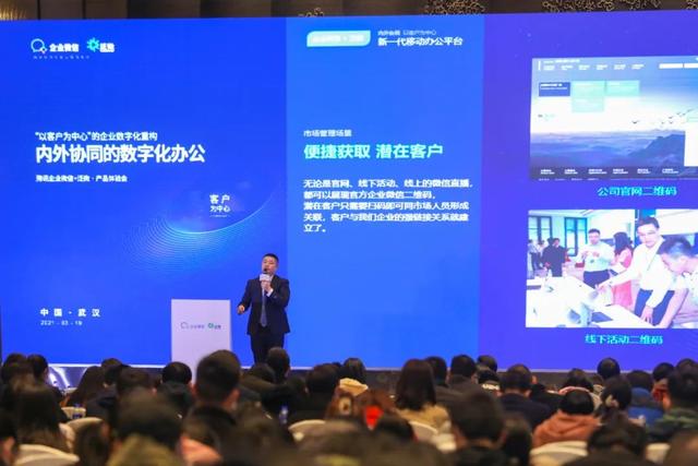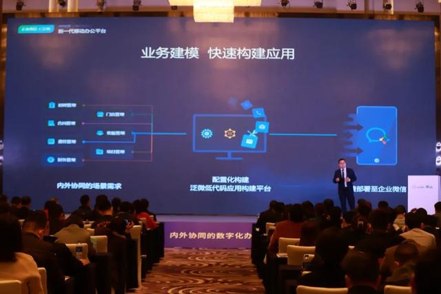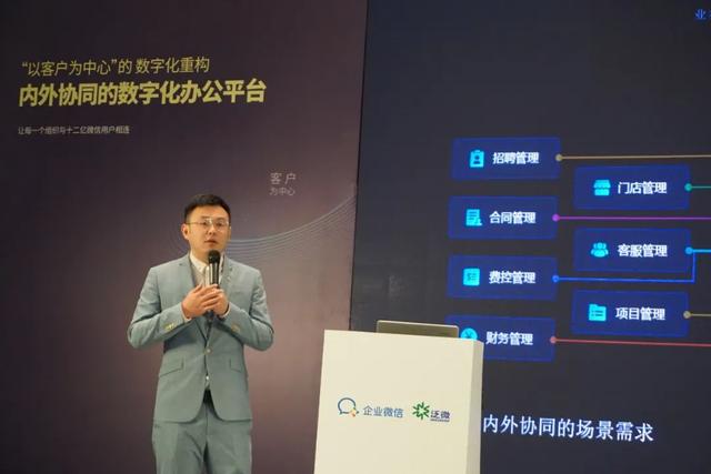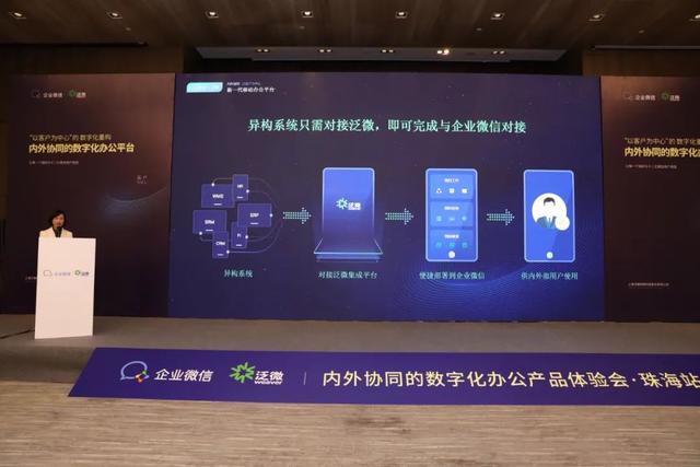 大会上企业微信和泛微的产品顾问演示了不同业务场景下的内外协同办公,让与会者深入感受内外协同带来的便捷。