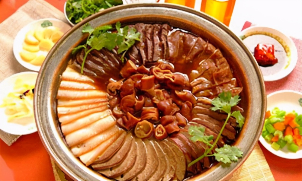 爆肚是京城名吃,名字听起来很简单,但实际上很有讲究。肚分为牛肚和羊肚,牛肚就按部位分了四种,羊肚更分了九种,按水爆、油爆、汤爆、芫爆等手法制作,爆好的爆肚吃起来鲜嫩脆爽,蘸上酱料,美味无比。