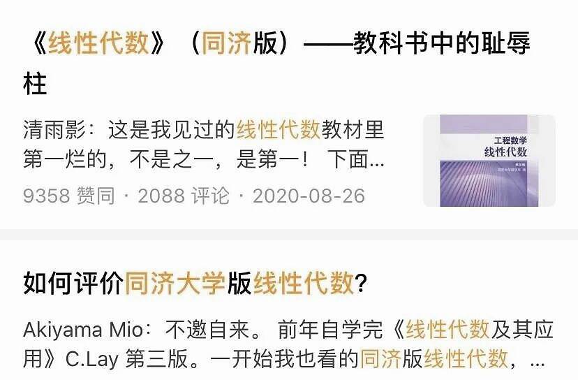 同济版《线性代数》再一次被推到了风口浪尖。
