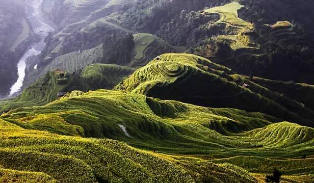 梯田处处有,可像龙脊梯田这样大规模的集中实属罕见。从流水湍急的河谷,到白云缭绕的山巅,从万木葱茏的林边到石壁陡崖前,凡有泥土的地方,都开辟了梯田。