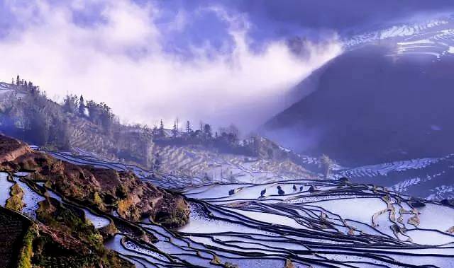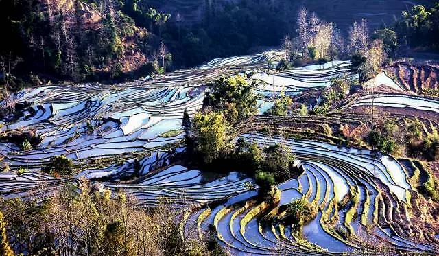 春天是插秧的季节,在此之前,元阳梯田已经蓄上了水,波光粼粼,拍出来的效果极好。