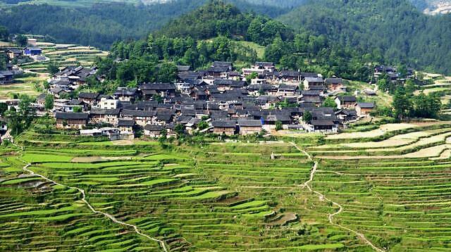 苗族的稻田都是依山而开,随山势地形的变化而变化,因地制宜,山坡海拔的高低,坡度的平缓及山坡的大小决定了梯田大小和形态。