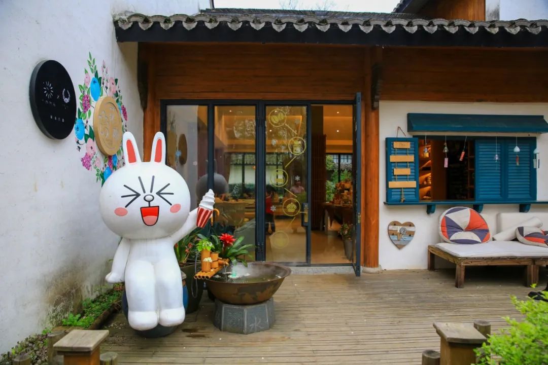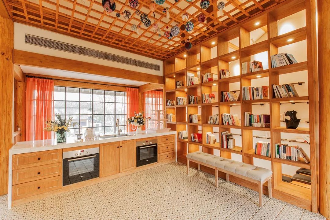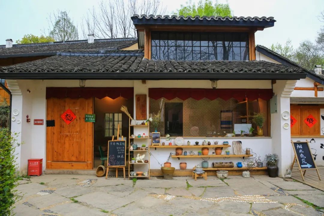 寻梅渚的村公所叫今样小酒馆,⼀边听着音箱里传来的乐声,⼀边饮着美酒,可阅读、喝茶、或晚上与三五好友来小酌一杯。
