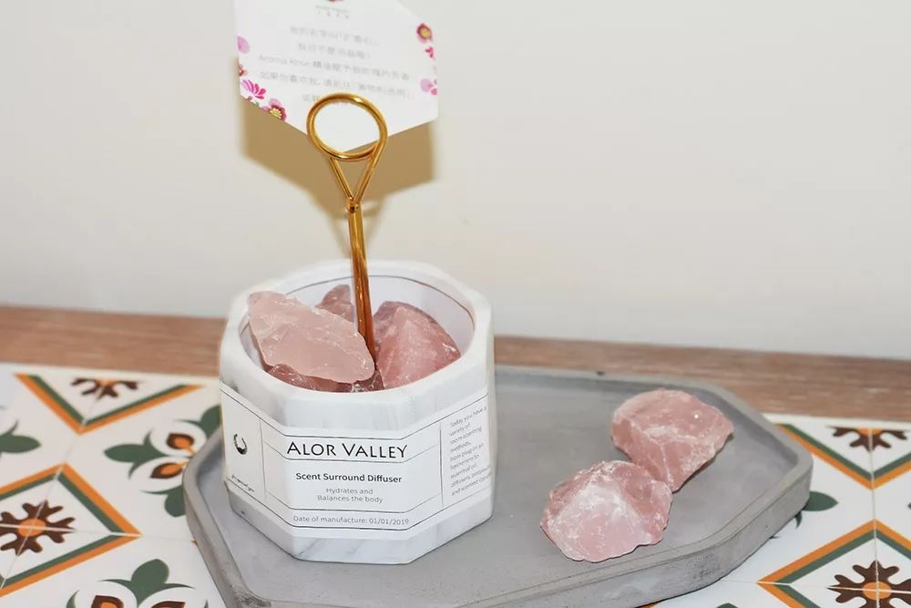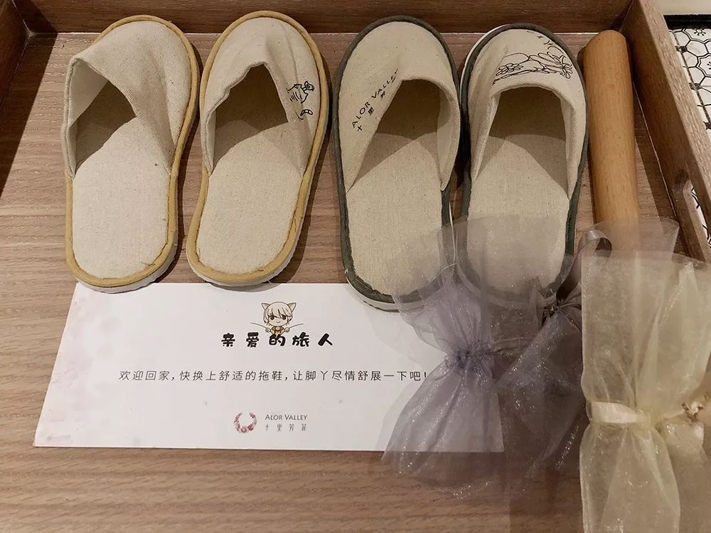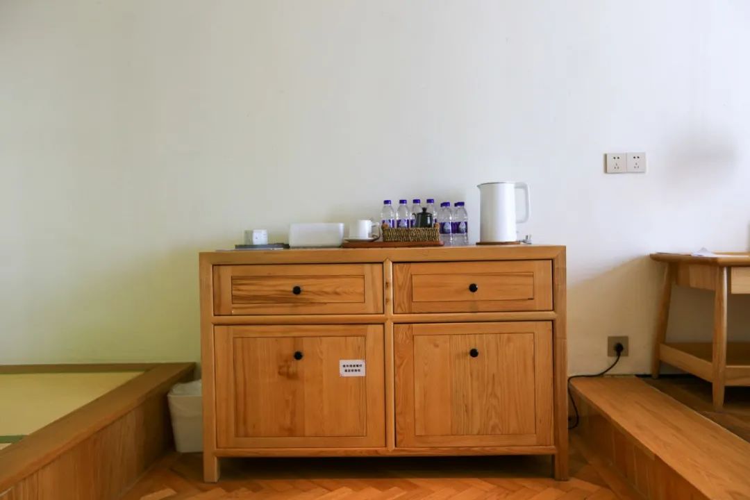 屋内桌面瓷砖是特别定做烤制,花纹清新,水壶、矿泉水、挂耳式咖啡、咖啡杯、茶杯、茶壶都有。欧舒丹精油做的扩香石,使得整个房间散发着淡淡的香味。