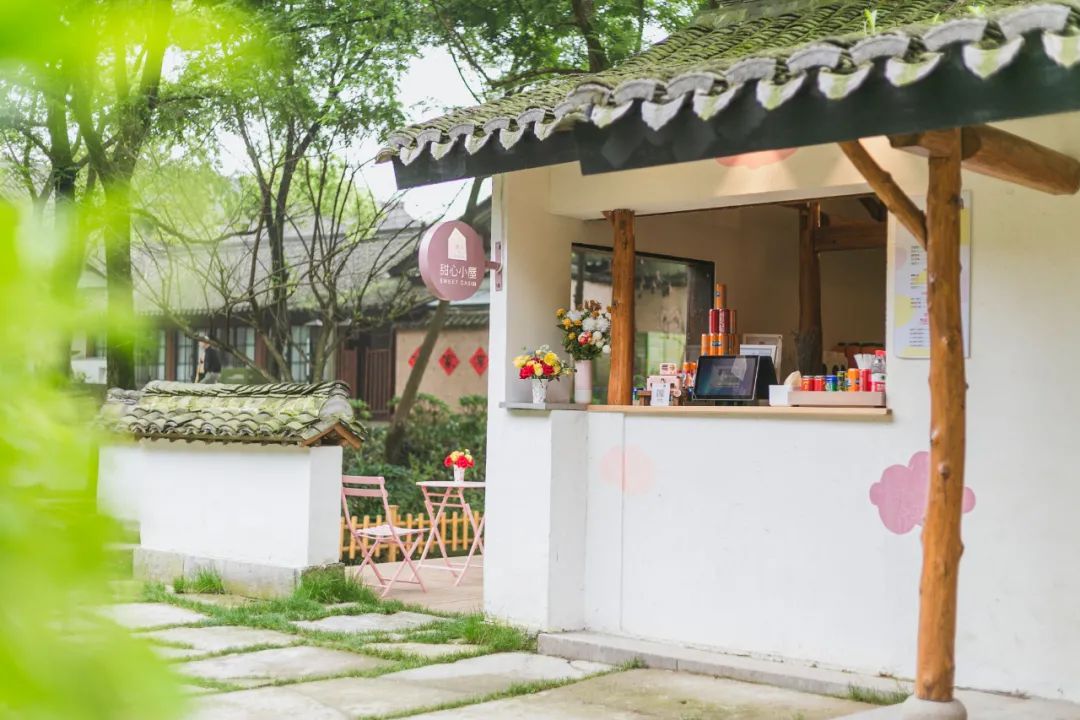 妈妈们可以在这里喝茶,咖啡、看一本喜欢的杂志,制作一束放在家里的鲜花。(村民食堂旁边就是花神咖啡)