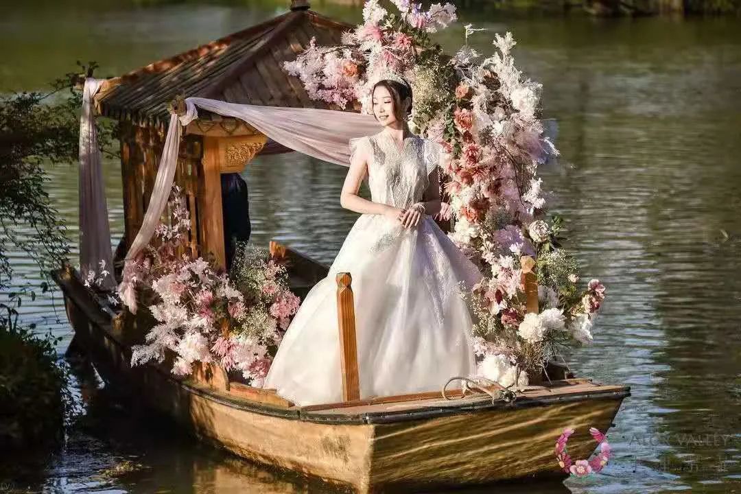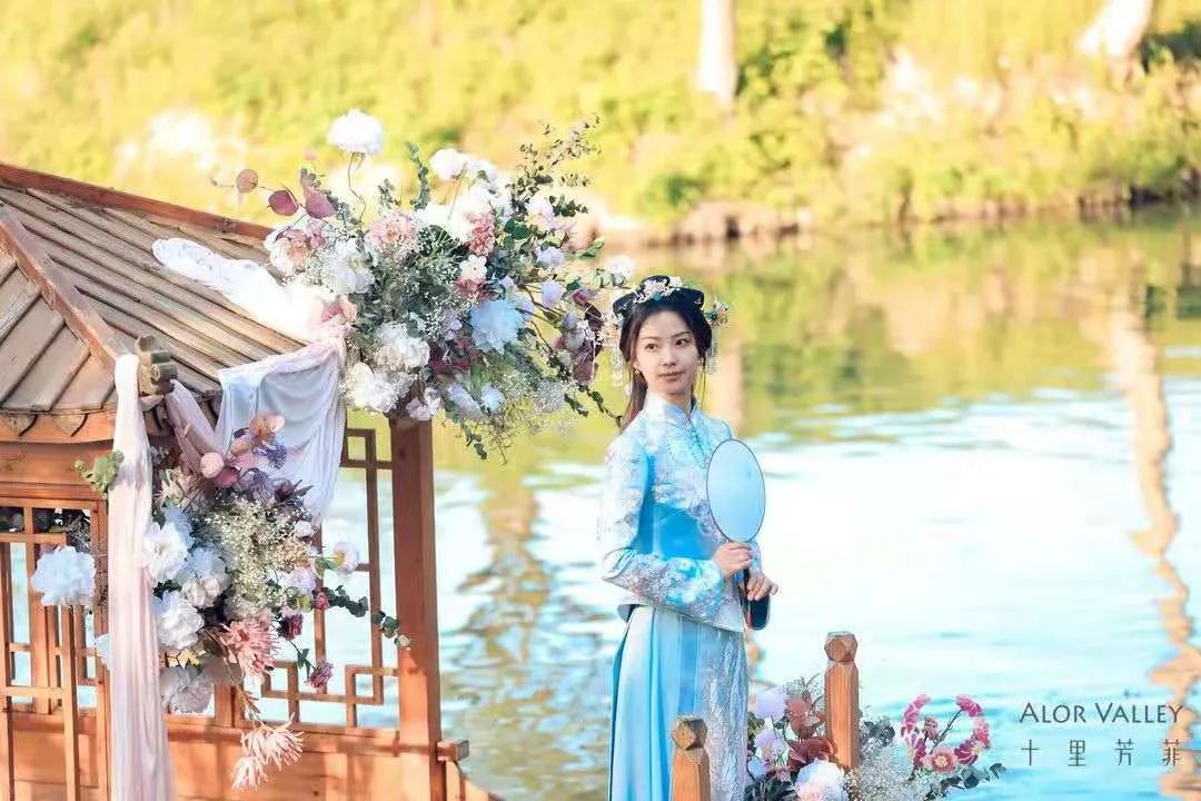 今年的百花朝贺即美好生活节,围绕花礼、花赞、花享三个主题展开,十里芳菲「以花养心,日用即道」的新生活美学主张,在这次美好生活节里得以全面的展现。十里芳菲X麦瑞婚礼联合呈现的水上婚礼,这更是一场村子里的喜事,集结了花神和众人的祝福,来到这里的新人,以水为媒,一起驶向崭新的人生旅程。