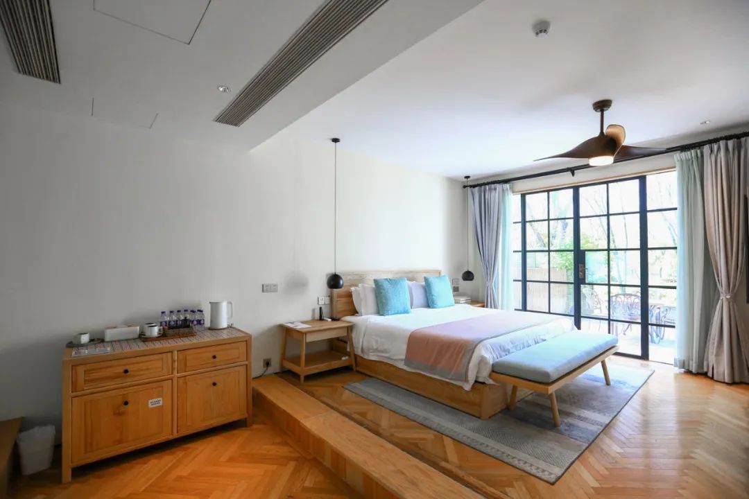 minibar里有可乐、网红的元气森林、比利时精酿啤酒等饮品,入住首晚均可免费享用,傍晚时分还会有管家送来鲜花饼。清晨悦耳的鸟鸣将你唤醒,打开窗户清风透过闯进屋内,在这里与大自然同起同睡。