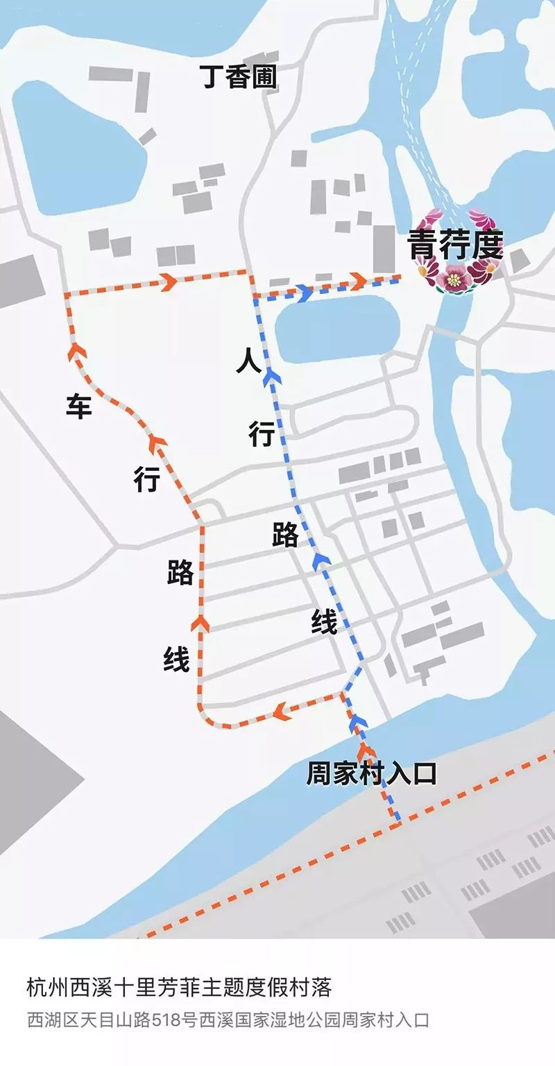 导航地址:腾讯/百度/高德导航搜索「杭州西溪十里芳菲主题度假村落」
