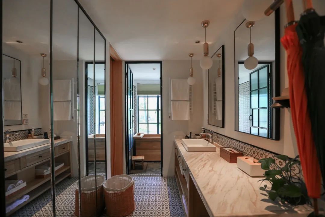 卫生间干湿分离,德国汉斯格雅卫浴、智能马桶、日本桧木浴缸散发着香气,边泡澡还能欣赏窗外美景。傍晚管家会贴心送来现摘的生姜,让我舒舒服服泡个暖汤。