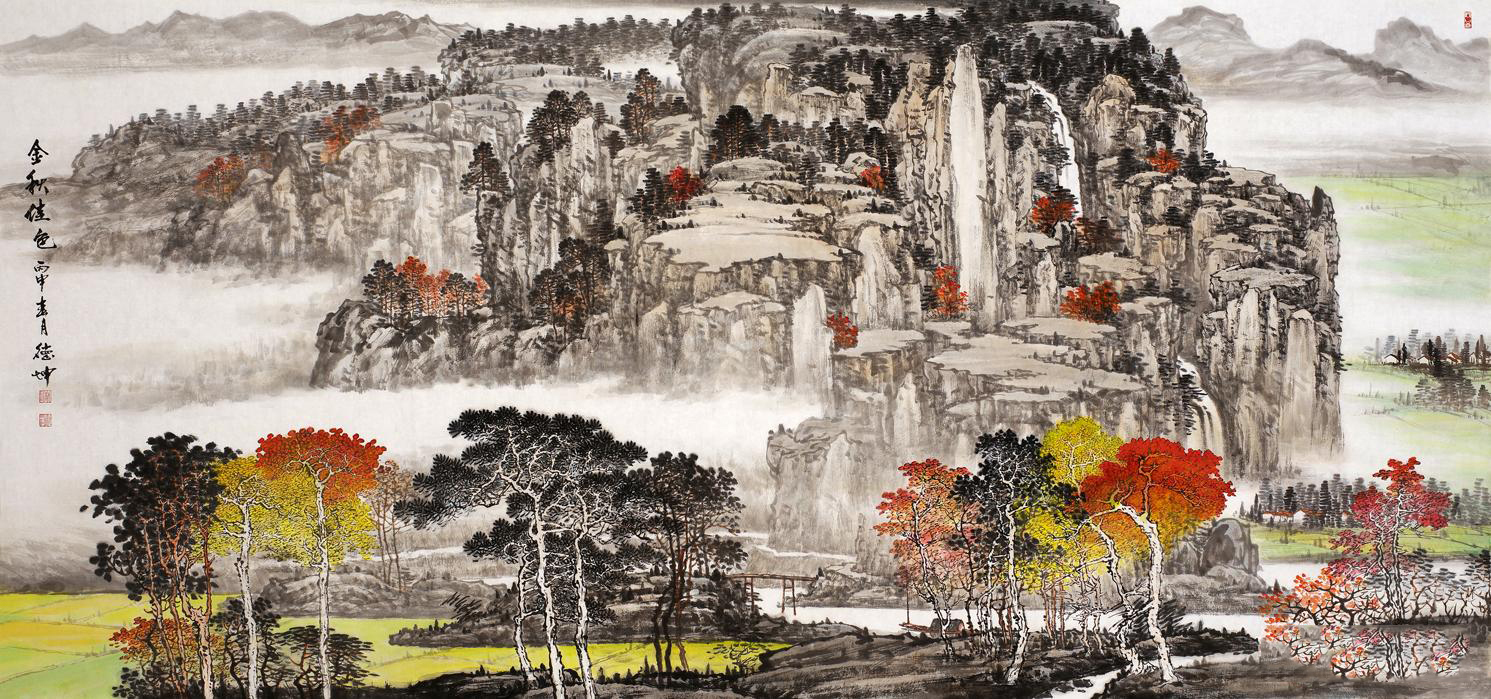 秋天,是丰收的季节,也是文人咏诗颂词、画家创作的时节,秋天在文人墨客笔下总是充满情意和创作的灵感。“浓墨重彩好写秋,择词琢句难写透。大雁衔来诗百篇,白云垂下画一轴。”今天让我们跟随当代名家林德坤先生的脚步,一起品读这关于“秋意”的山水风景画。
