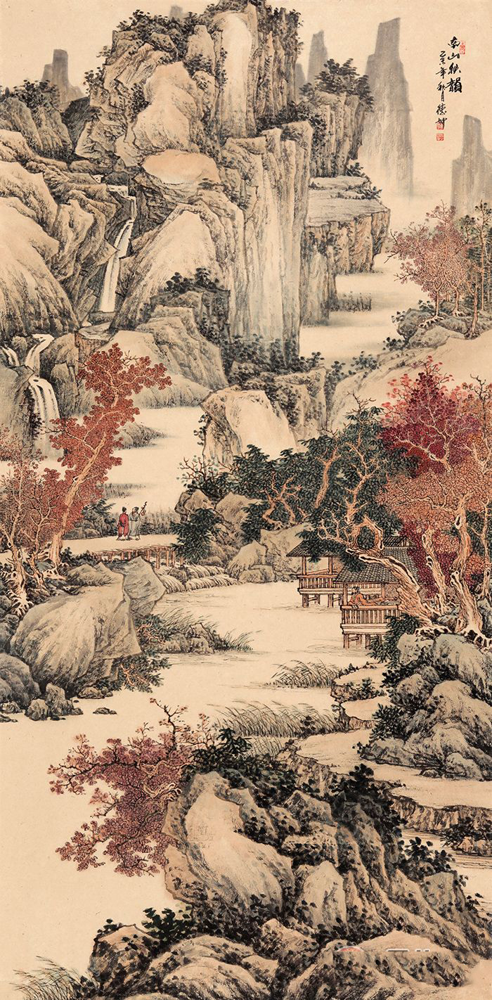 仿古国画藏品 林德坤山水风景画《南山秋韵》