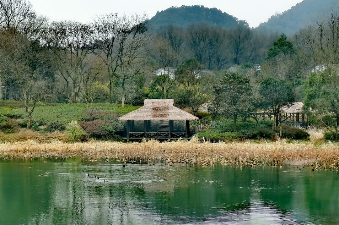 要说乌龟潭有什么特别之处,那就是静谧和湿地,当一堤之隔的花港游人如织时,来乌龟潭却能静静赏花游湖。湿地风光,为乌龟潭所独有,它又将西湖的山清水秀巧妙融合进来,辅以亭台楼榭和木曲桥,俨然一个微缩版的“小西湖”。