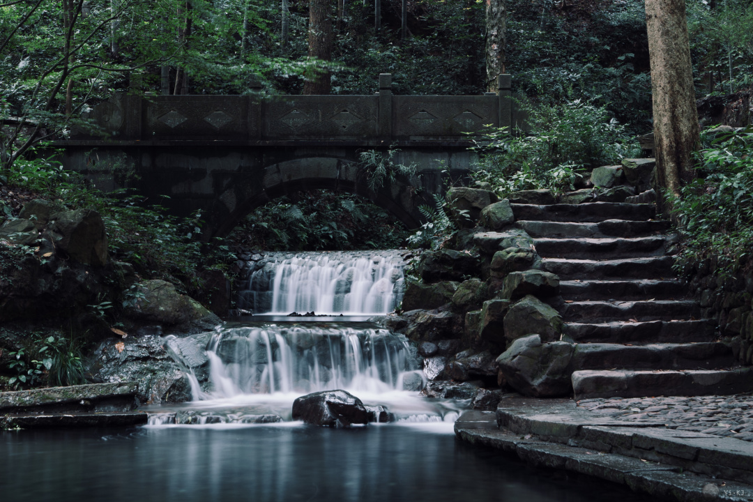 乌龟潭的一角,有一个小瀑布,另一角则有一座石桥,这座古桥是从桐庐按原貌拆迁过来,尽管都是小小景致却颇具灵气。在潭边随意找张长椅,倚着感受徐徐春光,或者打开一本书默读,一天的时光就慢慢过去了。