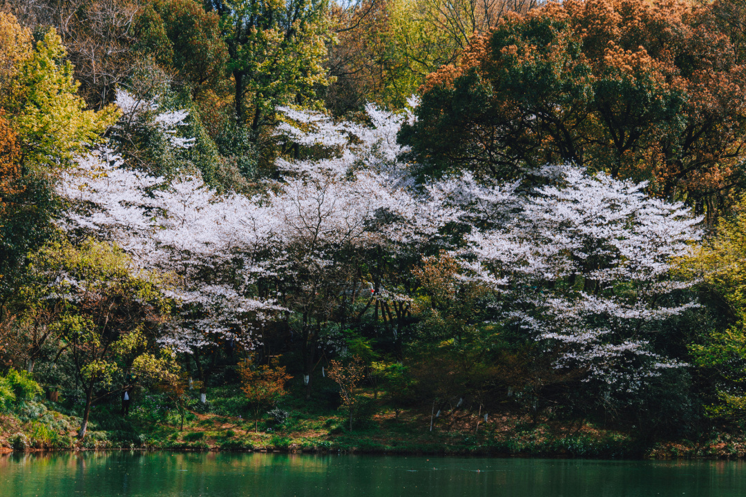 于谦祠前种满了白色晚樱,4月初开得刚刚好。沿着乌龟潭走一圈,红色杜鹃、紫藤、雪柳、海棠等各种春花交相辉映,衬着绿幽幽的潭水,想怎么拍怎么拍。偶尔遇见湖中摇船的工作人员,不经意入镜却成了画中的一部分。