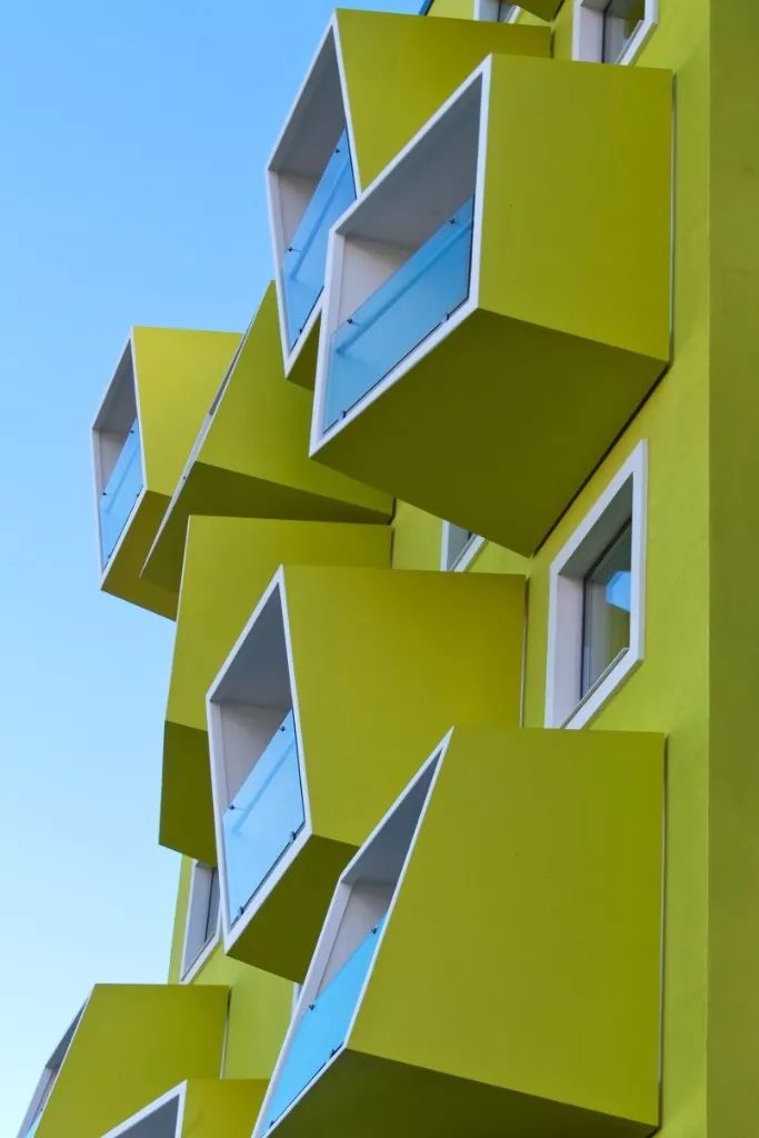 冰山公寓的线条棱角分明,锯齿状线条切割成高低错落的锐角,使其看起来就像漂浮在海面上的冰山。