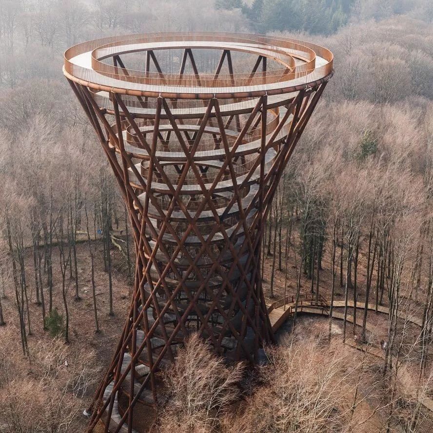 哥本哈根西南郊外的森林 Gisselfeld Klosters Skove 里,有一座矗立 45 米高的观景塔楼,相连着一条 900 米长的螺旋步道,缓缓向上延伸,创造了一种“漫步于森林之上”的独特体验。