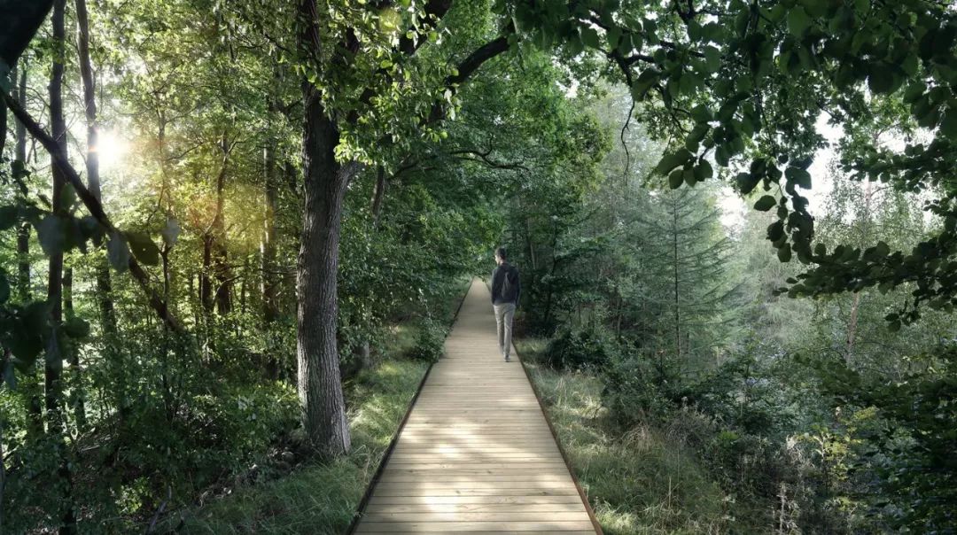 为了保护这片保存完好的森林同时又能让大众亲近它,穿过森林的路线会经过不同种类的森林,并最大限度地减少对环境的干扰。