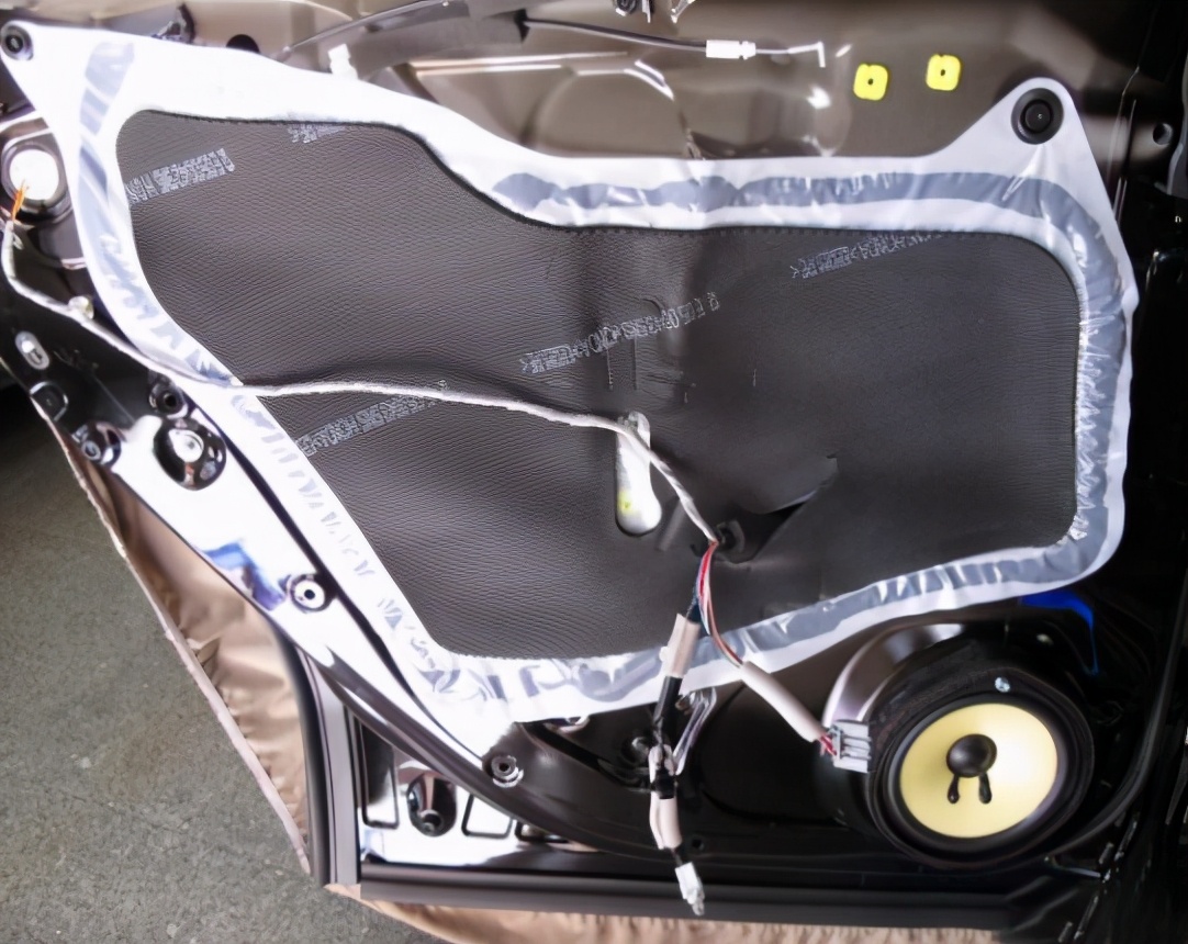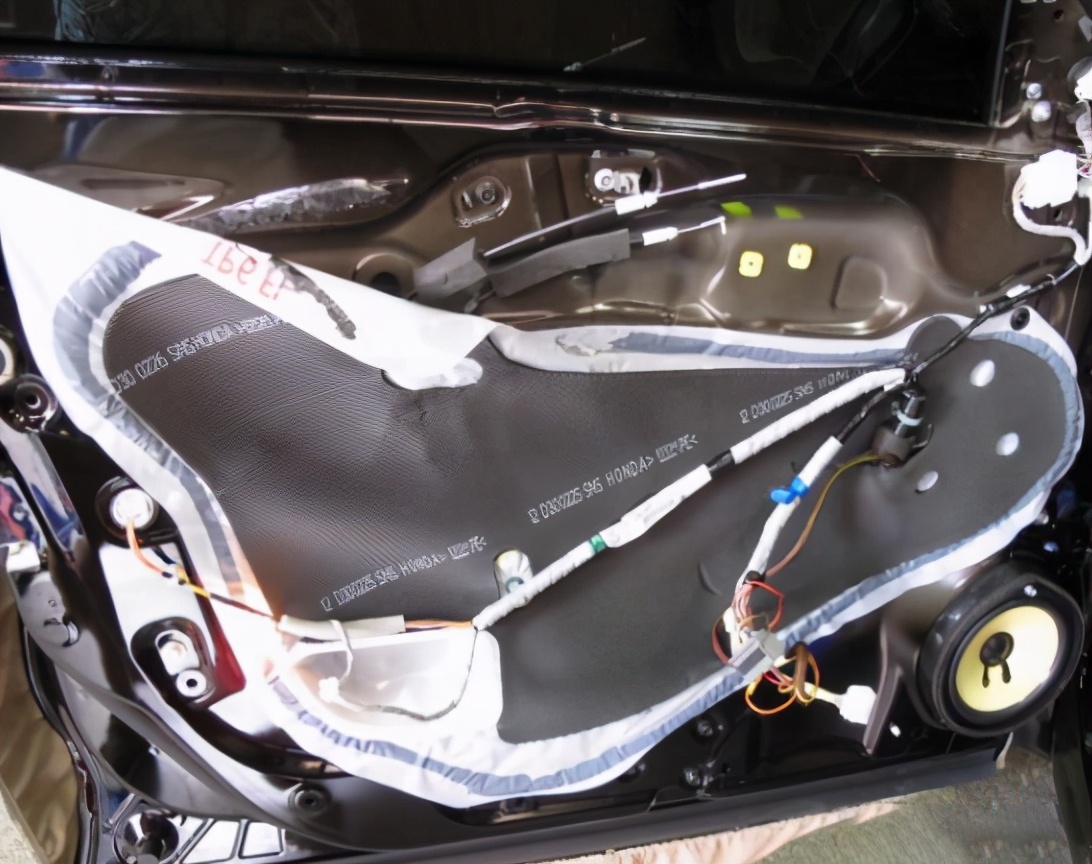 这样看上去还是蛮不错的对吧,相对比与其它车这样的四门隔音材料算是比较好的了,撕下来里面是没有隔音的,所有我们今天要做好的两层隔音。