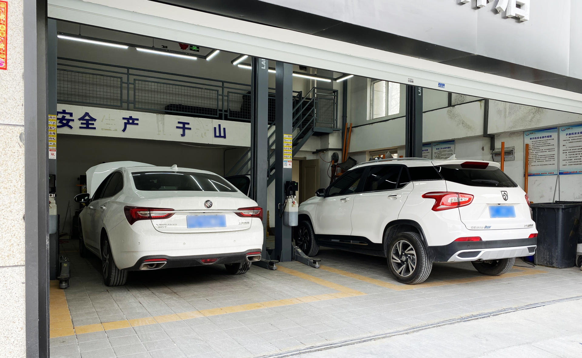 以上就是对于这款机油的介绍,下面我们就为车辆进行机油更换,进入到实际的使用体验环节。周末把车开到了途虎工场店。因为到的稍微晚了些,店里已经有两辆车了,都是做常规保养。于是我便把同事的530停到一边,到休息厅坐一会。