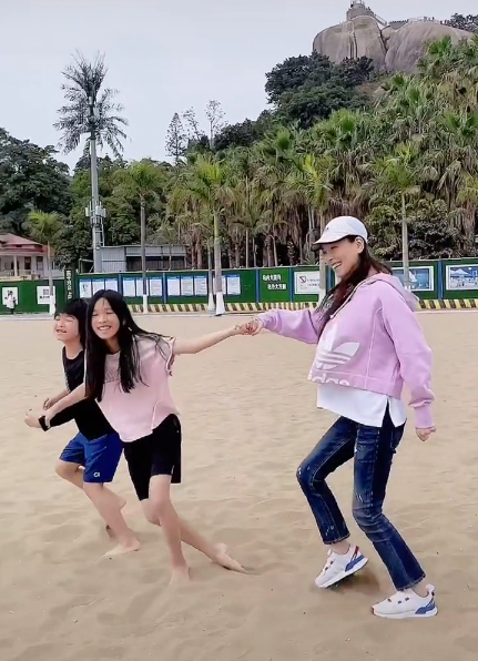 前段时间张庭还带着孩子一起去海边旅游,母子三人打扮休闲,手牵手并肩在沙滩上嬉戏玩耍,很是悠闲自在。